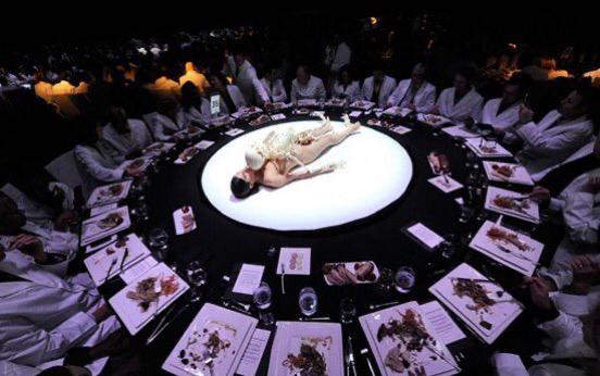 “When I finally got in there I was taken aback by the dramatic decor change, everything in this room was different shades of blue the music was romantic and all the furniture was cabana beds and love seats, I stood there for a second trying to realize what was different but I could put my finger on it until some girl walked by and caressed my shoulder in a really flirty manner. The decor changed but the way everybody was acting was drastically different before everybody seemed to be outgoing and inviting and friendly but the second they stepped foot into this room they became touchy flirty and suggestive I was only 19 at the time so this type of behavior from people that I saw as adults made me extremely uncomfortable especially when I saw that the cabana beds hand curtains that you could close for privacy and I realized but these people weren't just being suggestive they meant it. I tried to give David the eyes that I didn't like where this party was going but he seemed to be really enjoying the female attention so I was on my own and I basically stayed in perpetual motion and walked laps until the next time went off so I didn't have to sit next to anybody for too long and let them get too comfortable. The clock finally went off and everybody rushed to the next room immediately the weirdest or was the people that were in the private sections didn't even bother redressing except for the mask, I was in no rush to get to the next room but I could see into it over the crowd of everybody's head the walls were bright orange but the smells that were wafting in from that room were amazing and when I finally got in there it was like the Hogwarts feast. It was table after table of the most delicious spreads I've ever seen there was full tables seafood full tables for meats full tables of sushi and an entire wall of spirits I almost started enjoying myself again until I saw the way these people were treating this food, they were disrespectfully biting chunks of delicious prime rib roasts, they were just shoving copious amounts of high grade sashimi into their mouths and eating caviar like it was cereal the way that they were grabbing with their hands and just spitting out things that they didn't like onto the floor ruined my appetite at this point I wanted nothing to do with it.
