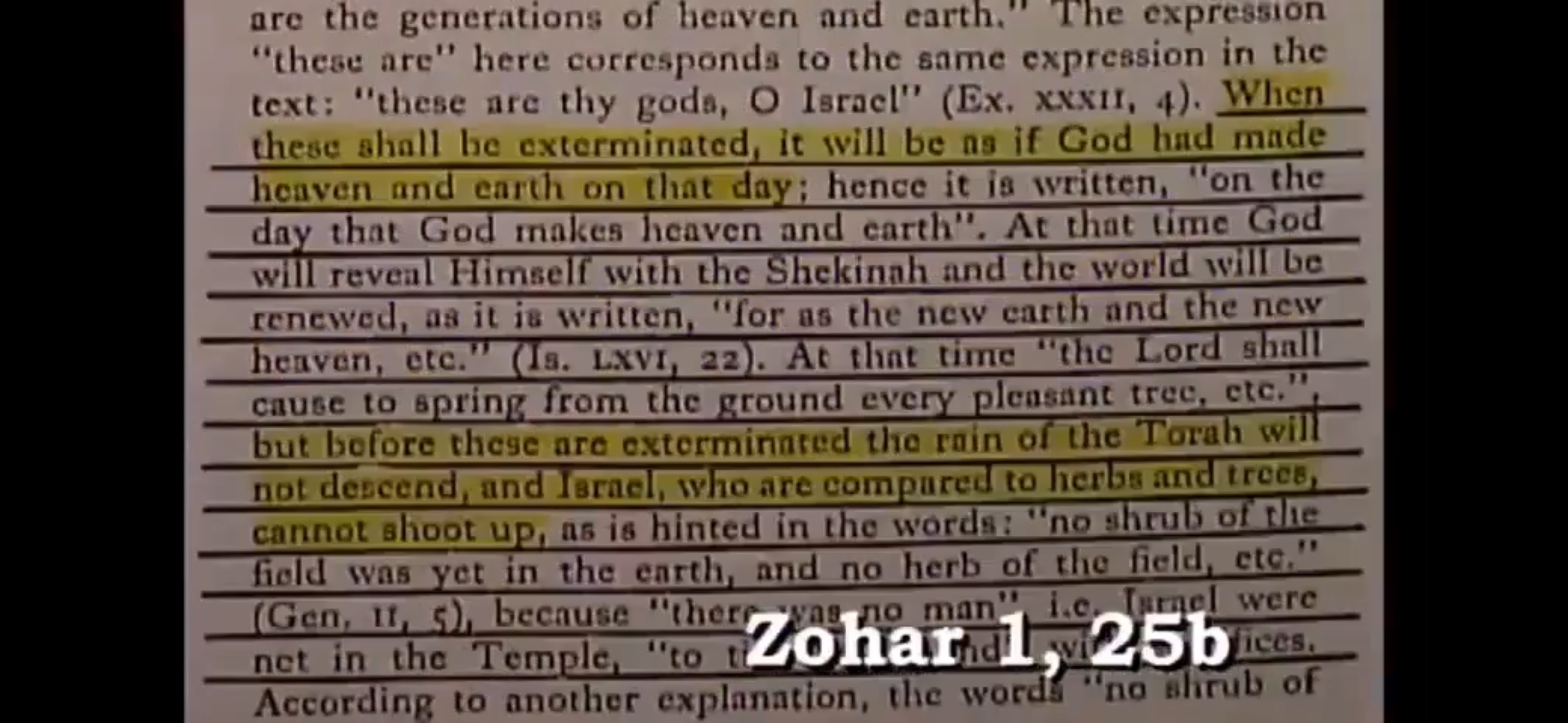 the Talmud's encouragement also explains why Jewish media moguls are so brazen on pushing immorality and even sodomy down the throat of Christians and the world, they have a Talmudic duty to cooperate with God, a God who wills a time of intense confusion and immorality, only by the collapse of Christian civilization can a better civilization follow, a Jewish kingdom of God on earth. As we have seen when the greatest rabbi's( spiritual leader) of the Talmud consider the raping and sodomising of little girls and boys to be justified, it is little wonder that such perverse moral attitudes filter into the content of the Jewish film industry. The 'Zohar' or 'Kabbalah' like the Talmud is also considered to be divinely inspired by religious Jews. It says in Zohar 1, 25b ["when God will reveal himself preceding the coming of Messiah the Gentiles will be wiped off the earth, redemption will not be complete until Amalek or Gentiles will be exterminated"], ["when these shall be exterminated it will be as if God had made heaven and earth on that day, but before these are exterminated the reign of the Torah will not descend and Israel who are compared to herbs and trees cannot shoot up"], the Zohar states in 1, 47a ["Gentiles not men but beasts of the earth at that time man meaning the Jews should be unique in the world and ruler over all"] basically justifying anything they do to non-jews because you are nothing more than cattle or goyim.