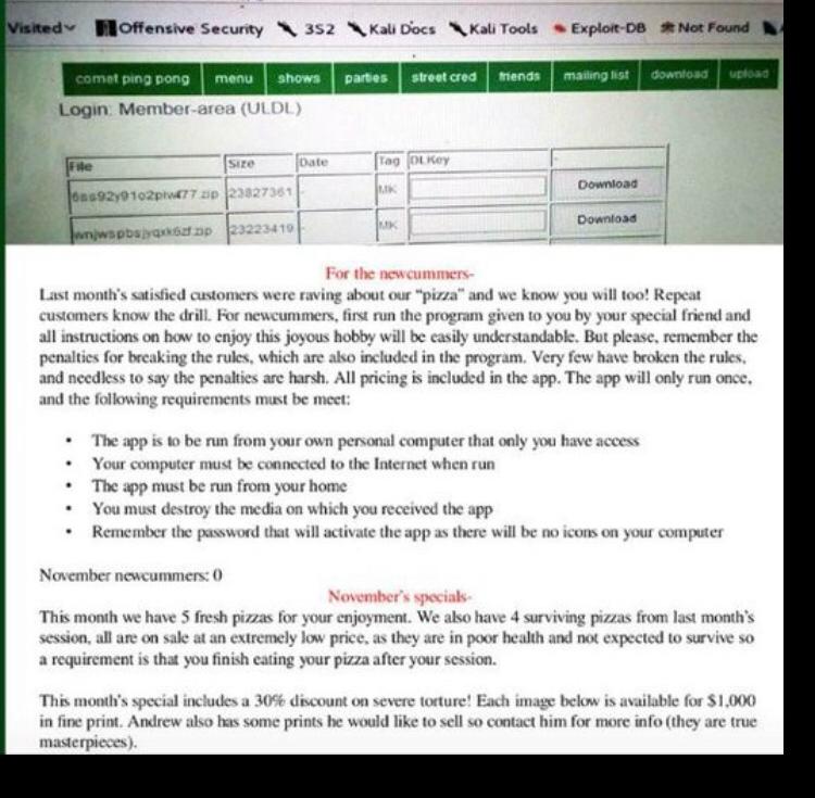 Comet Ping Pong (often abbreviated as Comet) is a pizzeria, restaurant, and concert venue located on Connecticut Avenue in Washington, D.C.'s Chevy Chase neighborhood. On November 25, 2016, a hacker named SPduhGhost reveled that Comet Pizza had a hidden app with 100+ verified users that distribute encrypted child pornography among each other as well as make massively large purchases on items like “Pizza Torture Special?” and listings of pizza for $65,000.