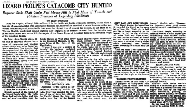 Shufelt never clarified whether these Lizard People actually looked like Lizards it may have not necessarily humanoid creatures but a figure of speech like how in ancient Ukranian the Khazar Empire (650-965ca) where called serpent people or how Dracula was known as the dragon where his name was derived from (dracula) or how the Hopi people where known as the ant people so this might have been the case. Their underground city did look like a lizzard. The tunnels were said to make up the outline of a great lizard, with its head located under Dodger Stadium and its tail somewhere under LA’s Central Library.
